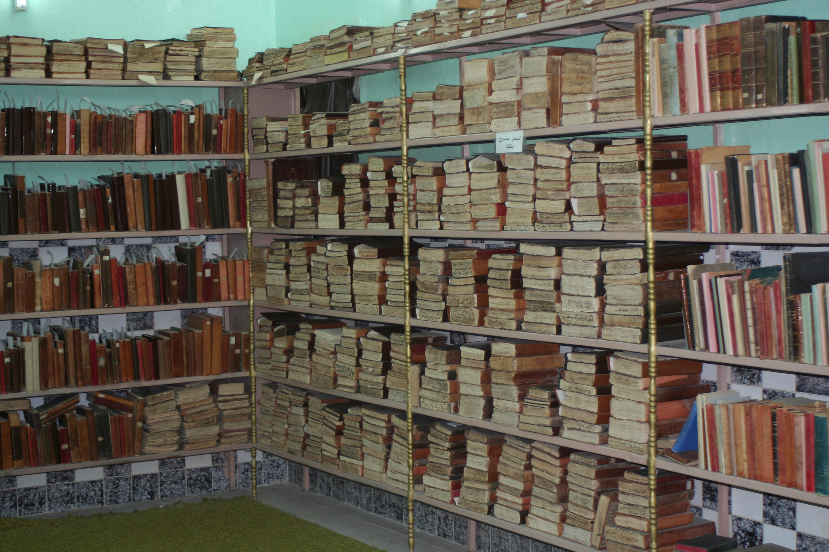 للزاوية مكتبة تضم ما يربو عن 1500 مخطوط، بدأ بإنشائها أولا الشيخ علي بن عثمان، ثمّ توالت أيدي شيوخ الزاوية في تكثير كتبها واستجلاب نفيسها، وكان للشيخ الحاج بن علي بن عثمان اليد الطولى في ذلك، وكثيرا ما كان يستصحب أحد النسّاخ الثلاثة العاملين عنده إلى مختلف الأصقاع لينسخوا له الكتب. تحتوي المكتبة على بعض الكتب النادرة منها جَذِينة «تتمّة يتيمة الدهر في محاسن أهل العصر» بخط المؤلف، وهو أبو منصور عبد الملك بن محمد بن إسماعيل الثعالبي النيسابوري رحمه الله تعالى، والتي يعود تاريخها إلى القرن الرابع الهجري، وهي أقدم ما في هذه المكتبة، لم يُقدّر لها أن تطبع بعد، كما يوجد بها مخطوط في الحديث للعقيلي يعود إلى القرن الرابع الهجري، وآخر في الحديث للقضاعي على رَقّ الغزال، والمكتبة ملك لعائلة علي بن عمر وليست وقْفا عامّا للمسلمين.