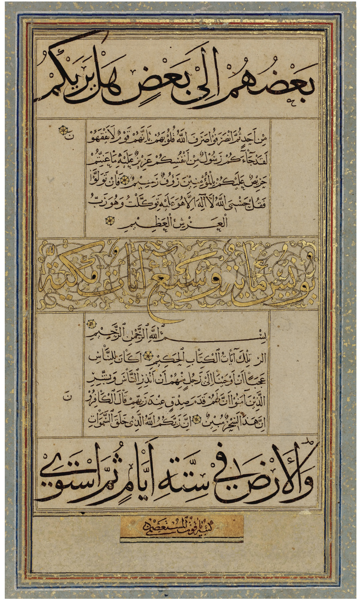 جمال الدين بن عبد الله المستعصمي الطواشي البغدادي الملقّب فيما بعد بقبلة الكتّاب، وهو من أبرز الخطّاطين في العصر العبّاسي بعد ابن البوّاب وتلامذته، وقد غطّى وجوده على سائر الخطّاطين، وبظهوره فُتح باب آخر في تحسين الخطّ. كان مملوكا للخليفة العباسي «المستعصم بالله» آخر خلفاء بني العبّاس فنُسب إليه، وأصله من بلاد الروم، كنيته أبو الدرّ وقد اشتراه الخليفة صغيرا ورُبّي في دار الخليفة. ذكره «تحفة خطّاطين» أنّه كان طواشيا، ويُطلق الأتراك على العبد الرقيق اسم طواشي. أخذ الخطّ عن صفي الدين عبد المؤمن الأرموي وعن زكي الدين عبد الله بن حبيب، اللذين كانا يكتبان الخطّ على طريقة ابن البوّاب، وقيل هو آخر من انتهت إليه رئاسة الخطّ المنسوب في دولة بني العبّاس، دقّق خطوط ابن مُقلة وابن البواب وطوّرها وأضاف إلى الحروف جمالا ورونقا بما زاده من تحريف في القلم، وقد عُرف التحريف في القطّ منذ القرن الثالث الهجري أي قبل ياقوت بأربعة قرون، وكان الكتّاب الخطّاطون ينصحون به، وقال الحسن بن وهب، وهو من كبار الكتّاب وقد توفي في حدود سنة 250: «يحتاج الكاتب إلى خلال: جودة بري القلم، وإطالة جلفته، وتحريف قطّته، وحسن التأتّي لامتطاء الأنامل، وإرسال المدّة بعد إشباع الحروف».
